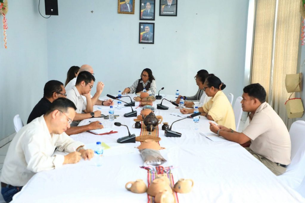 Exelénsia Prezidente Autoridade Munisipál Baucau, 𝐃𝐫𝐚. 𝐕𝐞𝐧𝐞𝐫𝐚𝐧𝐝𝐚 𝐄. 𝐌. 𝐋𝐞𝐦𝐨𝐬 𝐌𝐚𝐫𝐭𝐢𝐧𝐬, hala’o enkontru ho Organizasaun Banco Mundial Iha Timor-Leste, Sr. Karen Navarro, ho nia ekipa hamutuk Ministeriu Finansas, Diretór Geral- Sr. Francisco da Silva, iha salaun WEWE-AMB.